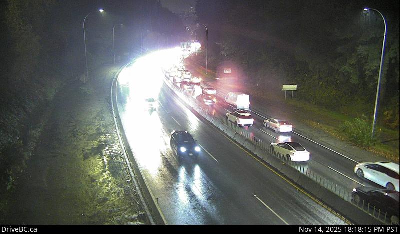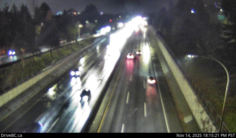 Hwy 1, at Cross Creek/15th St exit in West Vancouver, looking east.