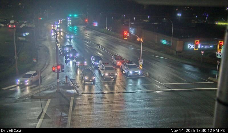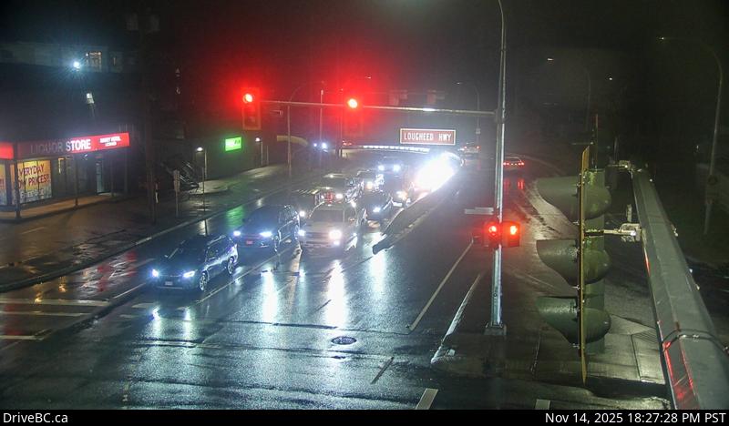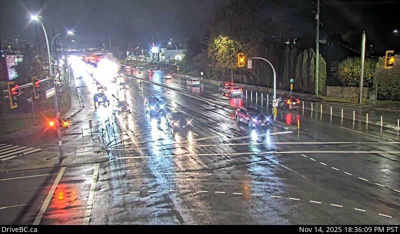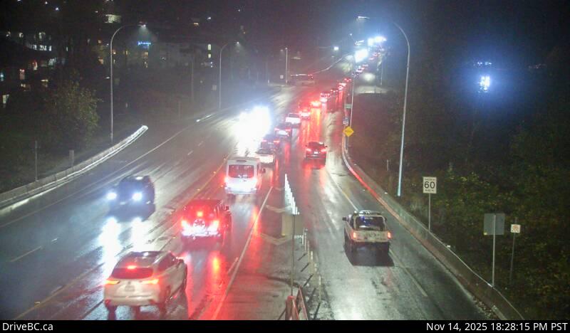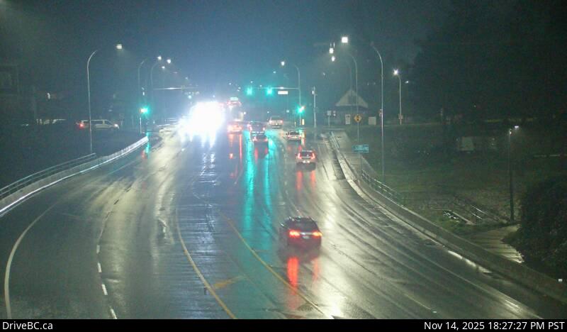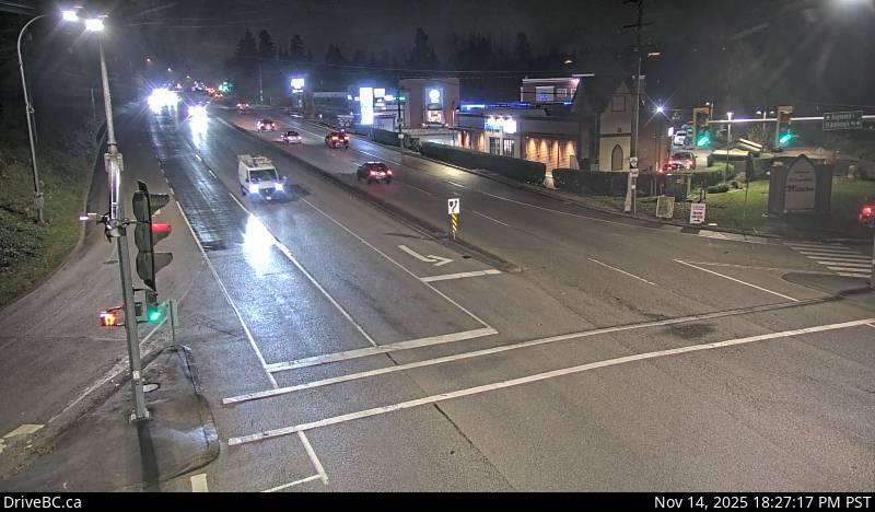 Northbound on Kanaka Way at Lougheed Highway.