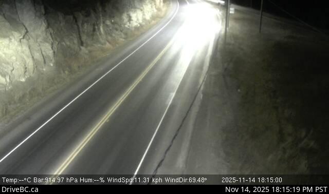 Hwy 16, east of Prince Rupert near McNeil River at the Rainbow Summit chain-up area, looking west.