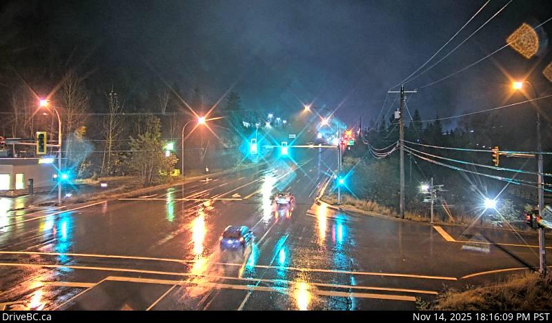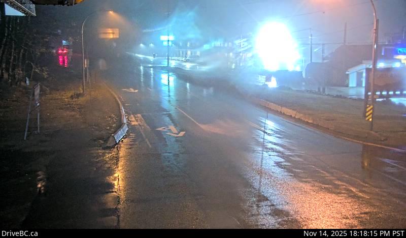 Hwy 3B at Hwy 22 near the Rossland Weigh Scale, looking west on Hwy 22.