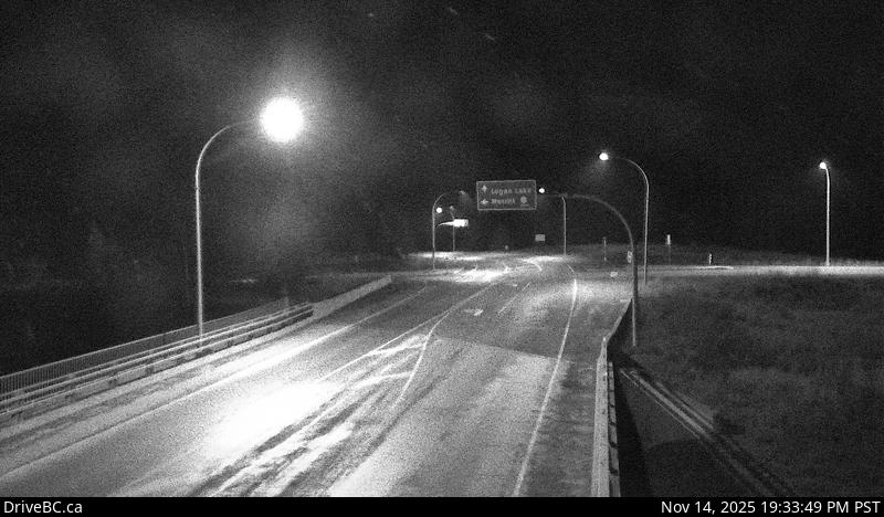 Highway 97D (Logan Lake/Lac le Jeune Road) at Highway 5, looking southwest.