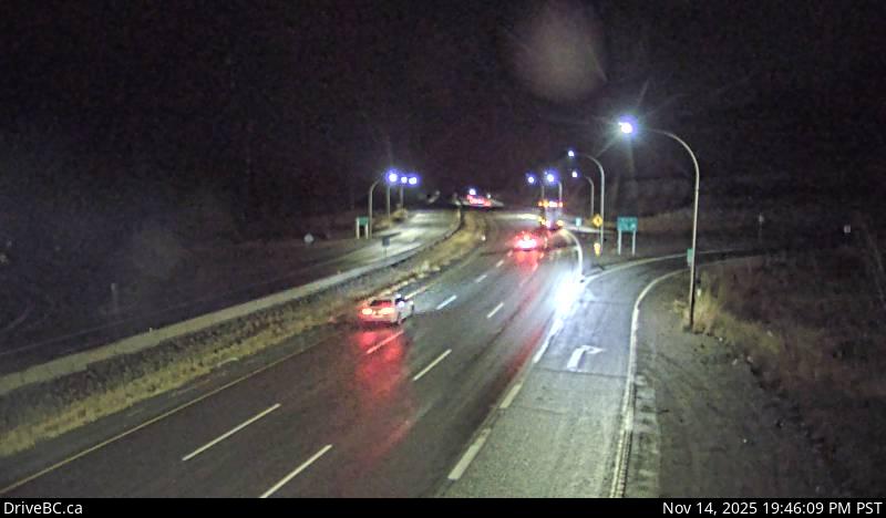 Highway 5 at Exit 366 Logan Lake/Lac le Jeune Road, looking southbound along Highway 5.
