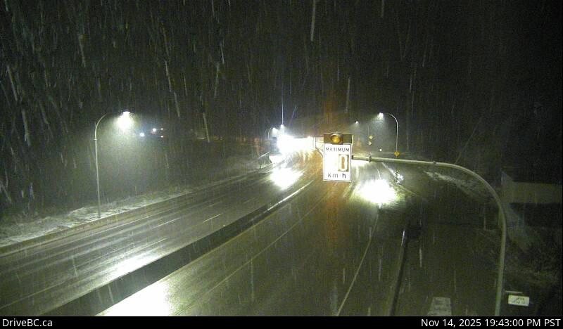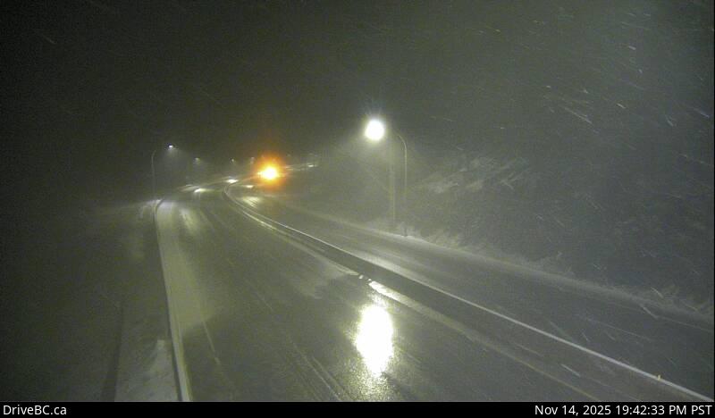 Highway 5 northbound at Zopkios Rest Area near the Coquihalla Summit looking south.