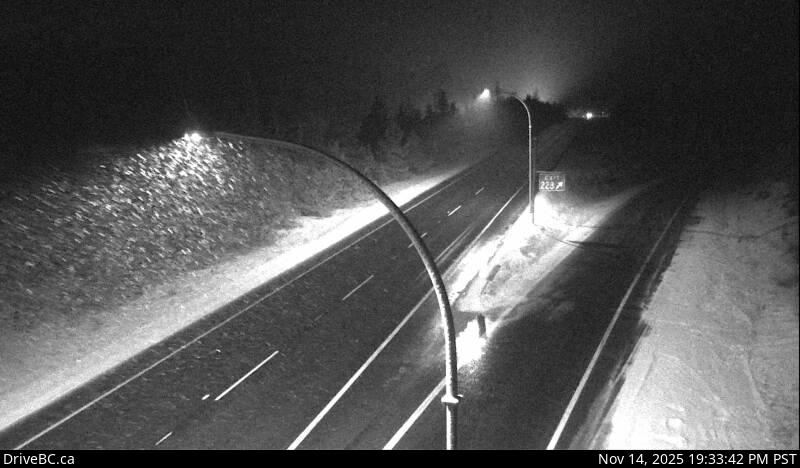 Highway 5 northbound at Zopkios Rest Area near the Coquihalla Summit looking north.