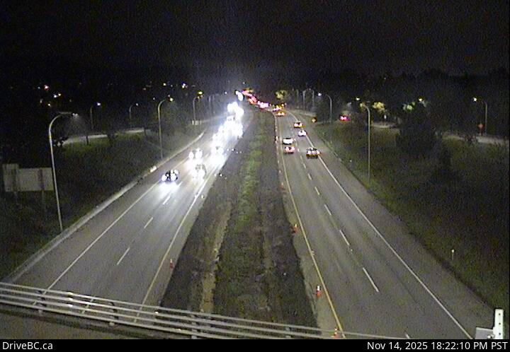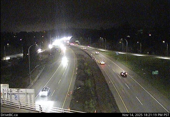 Hwy 1 south of Mill Bay Rd Overpass at the Bamberton Park Entrance, looking north.