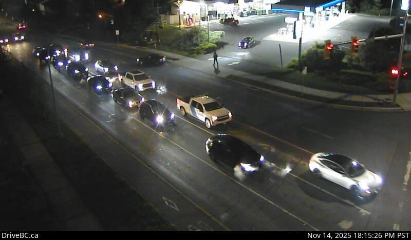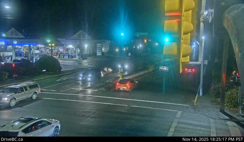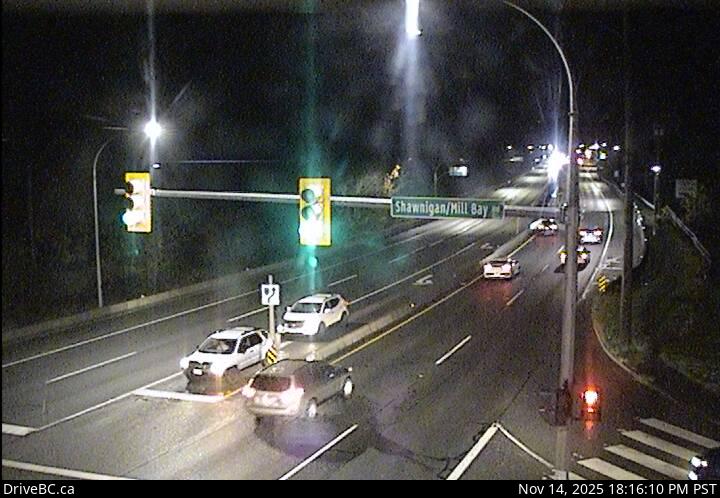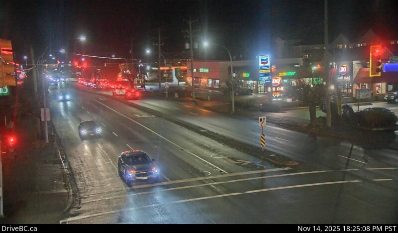 Hwy 1 at South Shawnigan Lake Rd, looking west.