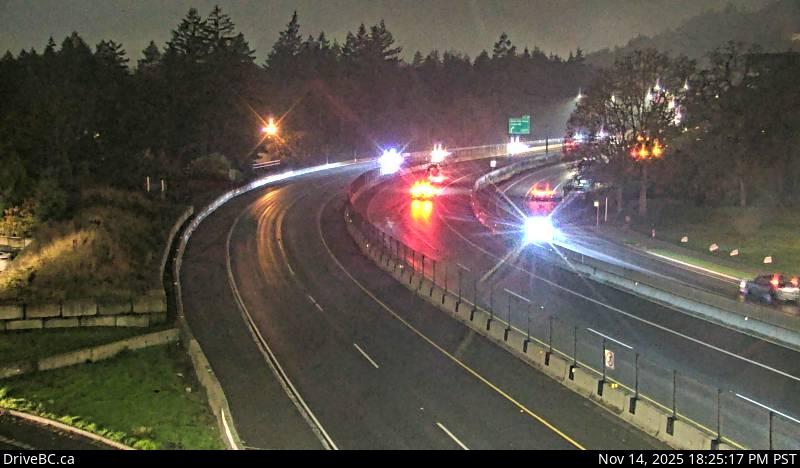 Hwy 1, in Goldstream Park at Finlayson Arm Rd, looking north.