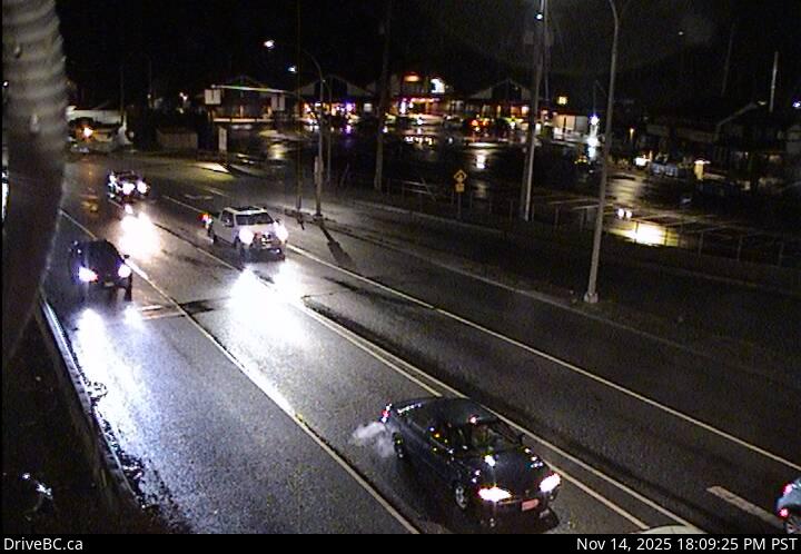 Hwy 1 at Zorkin Rd/Brechin Rd, looking at Departure Bay Ferry Terminal.